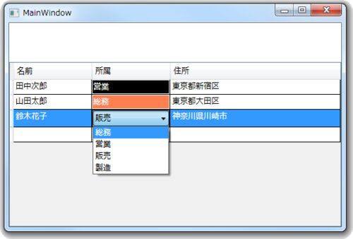 A.DataGridColumn.CellStyle にスタイルを定義し、トリガーを設定します。 以下は、Livet を使ったサンプルです。 まず Model に Person クラスを用意しました。名前と所属と住所だけの簡単なクラスです。ちなみに名前空間はコードの都合上、省略してますの…