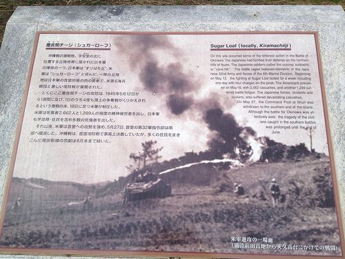 シュガーローフ頂上にある碑文 7月5日から一泊二日の行程で沖縄行って来ました。沖縄行くのは初めてですが、今回は所用のため観光地に行けたのは首里城公園だけ。しかも首里城もほとんど見れず、公園のレストランでタコライス定食を食べただけという非常に慌…